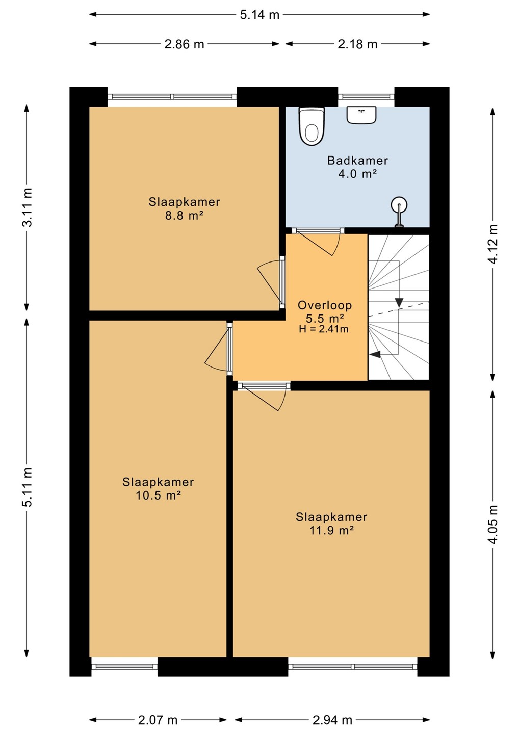 Op de eerste verdieping bevinden zich drie slaapkamers, waarvan er twee gekoeld kunnen worden door een gedeelde airco-unit. De badkamer is afgewerkt met een inloopdouche en tweede toilet. Heb je behoefte aan een vierde slaapkamer? De tweede verdieping is bereikbaar via een vaste trap, waardoor het creëren van een extra (slaap)kamer zeer eenvoudig is.