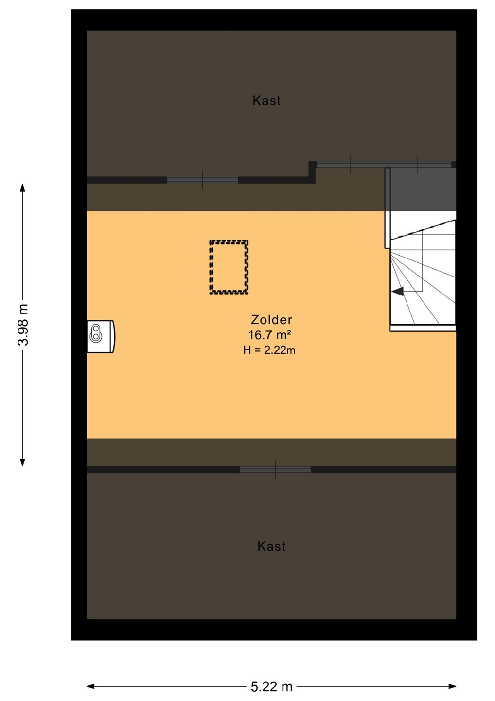 Via vaste trap bereikbare zolderberging met CV-opstelling. Deze ruimte is uitermate geschikt als extra slaap- of werkkamer.