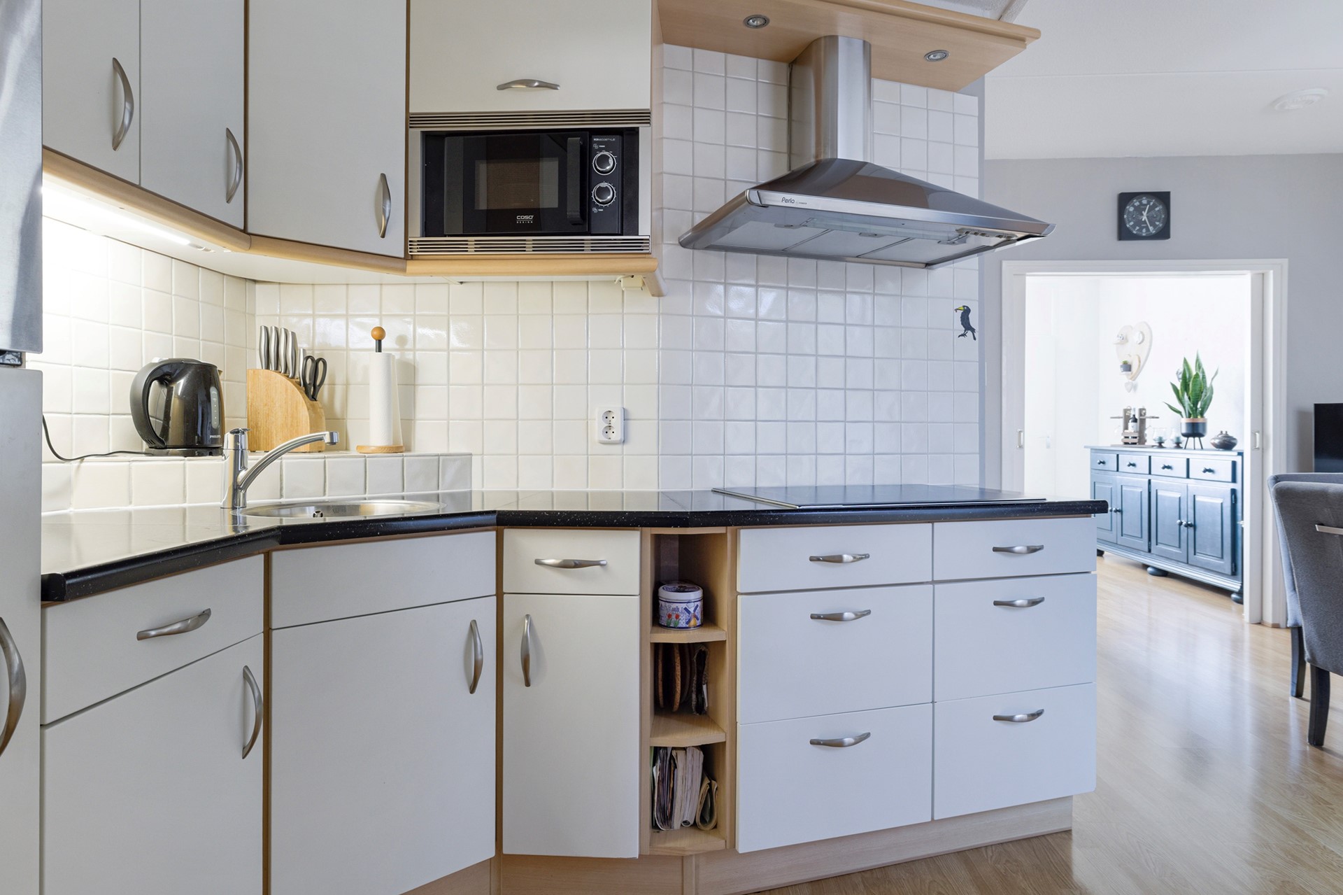 De woning verrast door de sfeervolle indeling: vanuit de lichte woonkamer loop je via prachtige en-suite deuren de keuken in. De keuken is eenvoudig maar functioneel en biedt via een schuifpui direct toegang tot de heerlijke serre. Een ideale plek om al vroeg in het voorjaar van het buitenleven te genieten! Comfort en ruimte