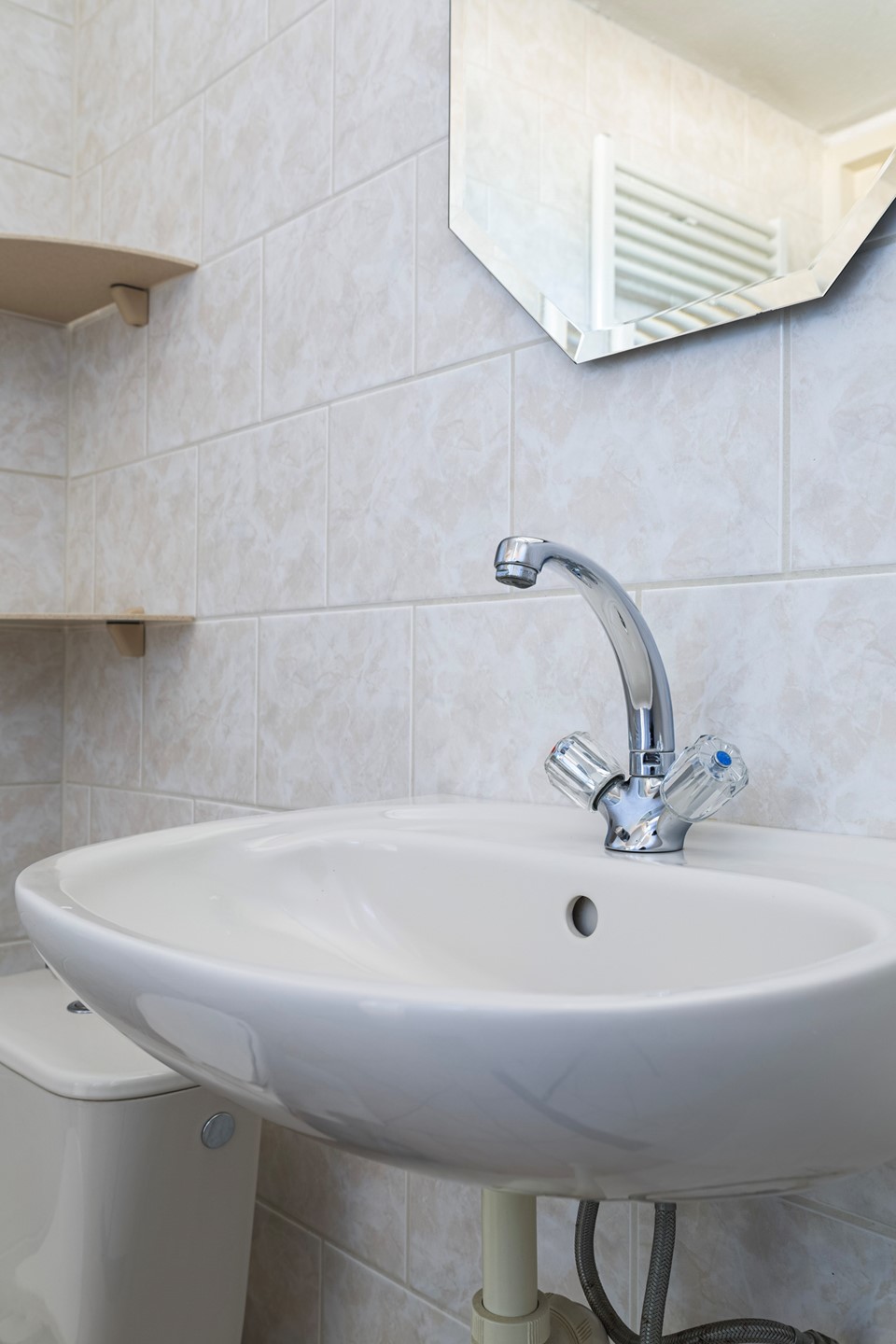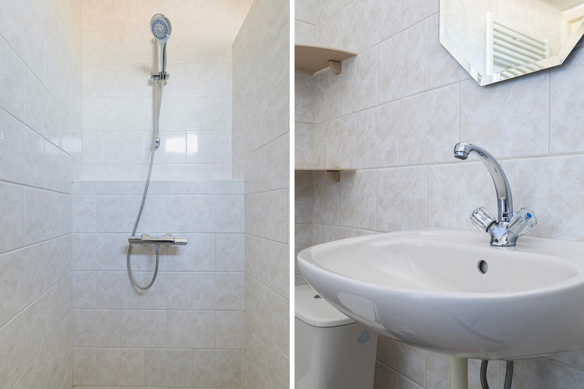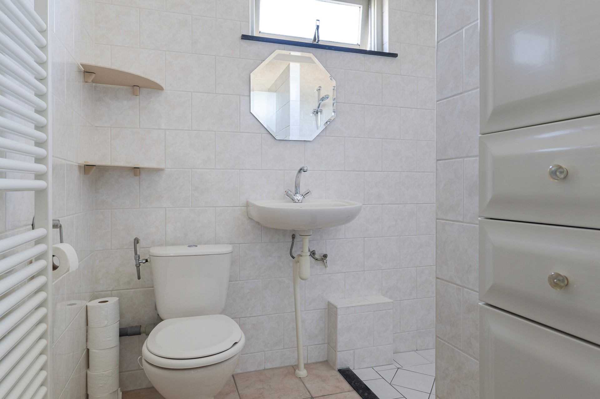 Overloop naar 3 slaapkamers. Nette badkamer voorzien van inloopdouche, wastafel, tweede toilet en designradiator.