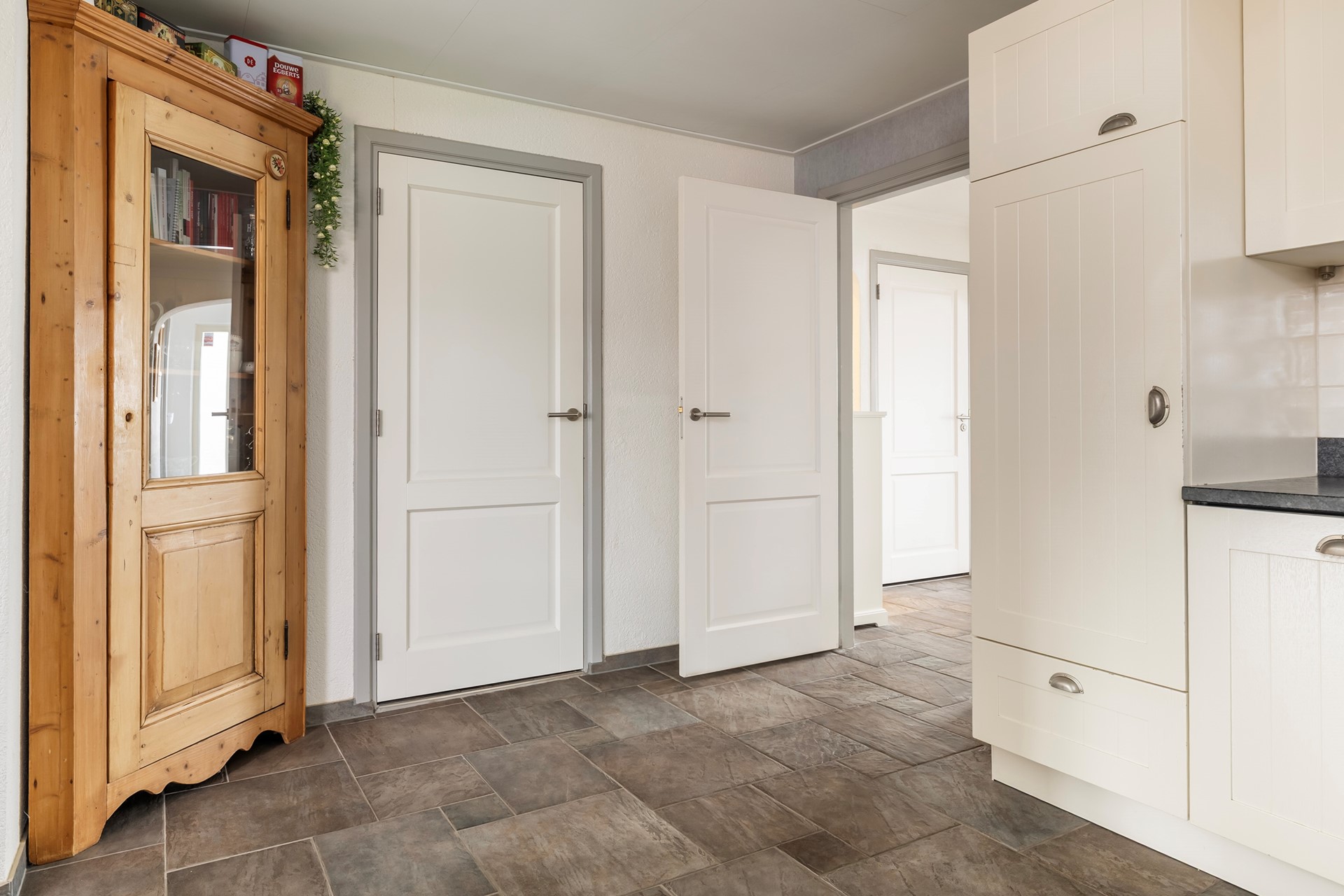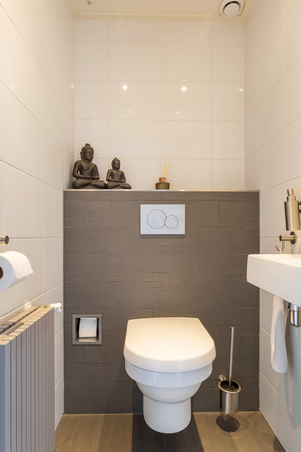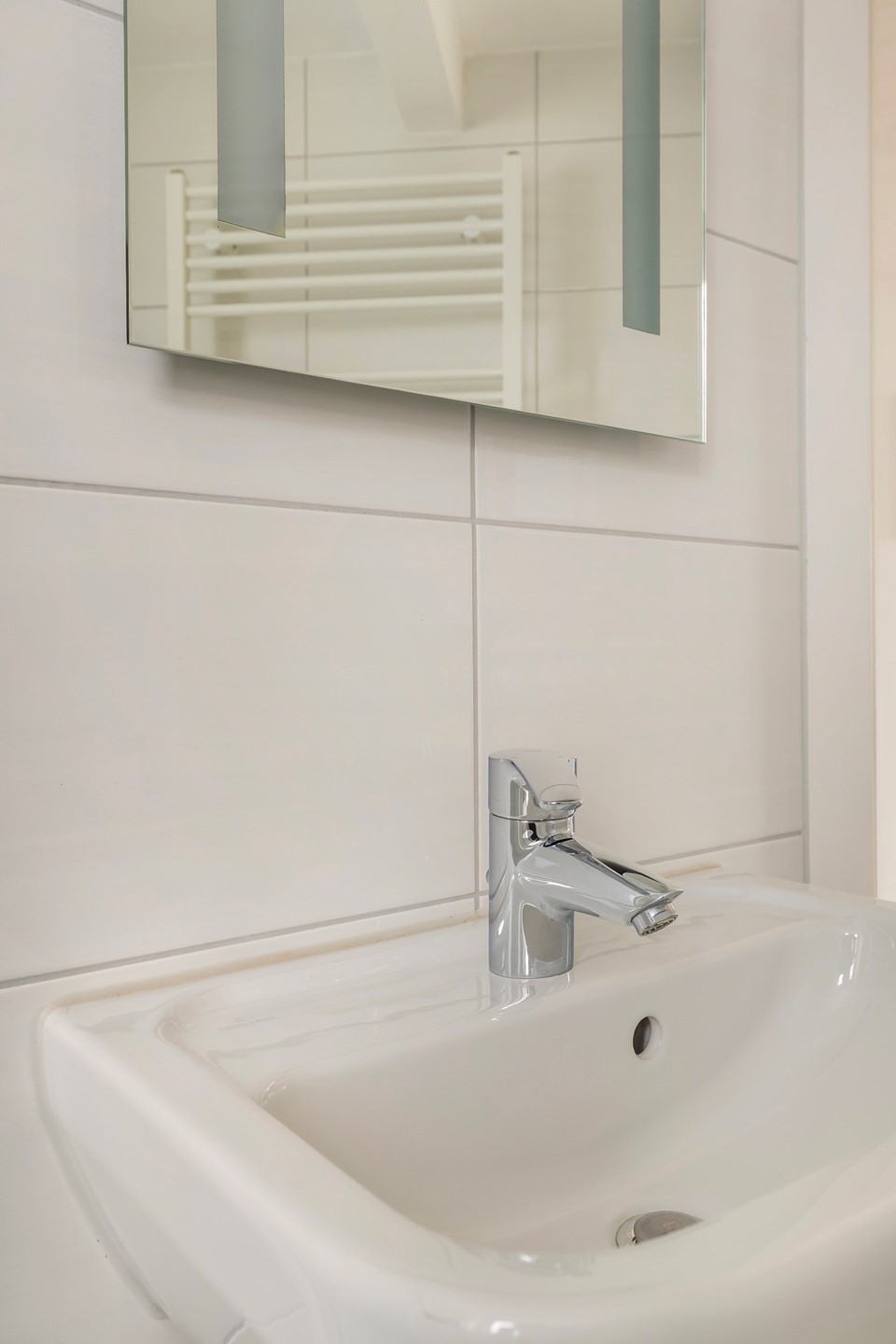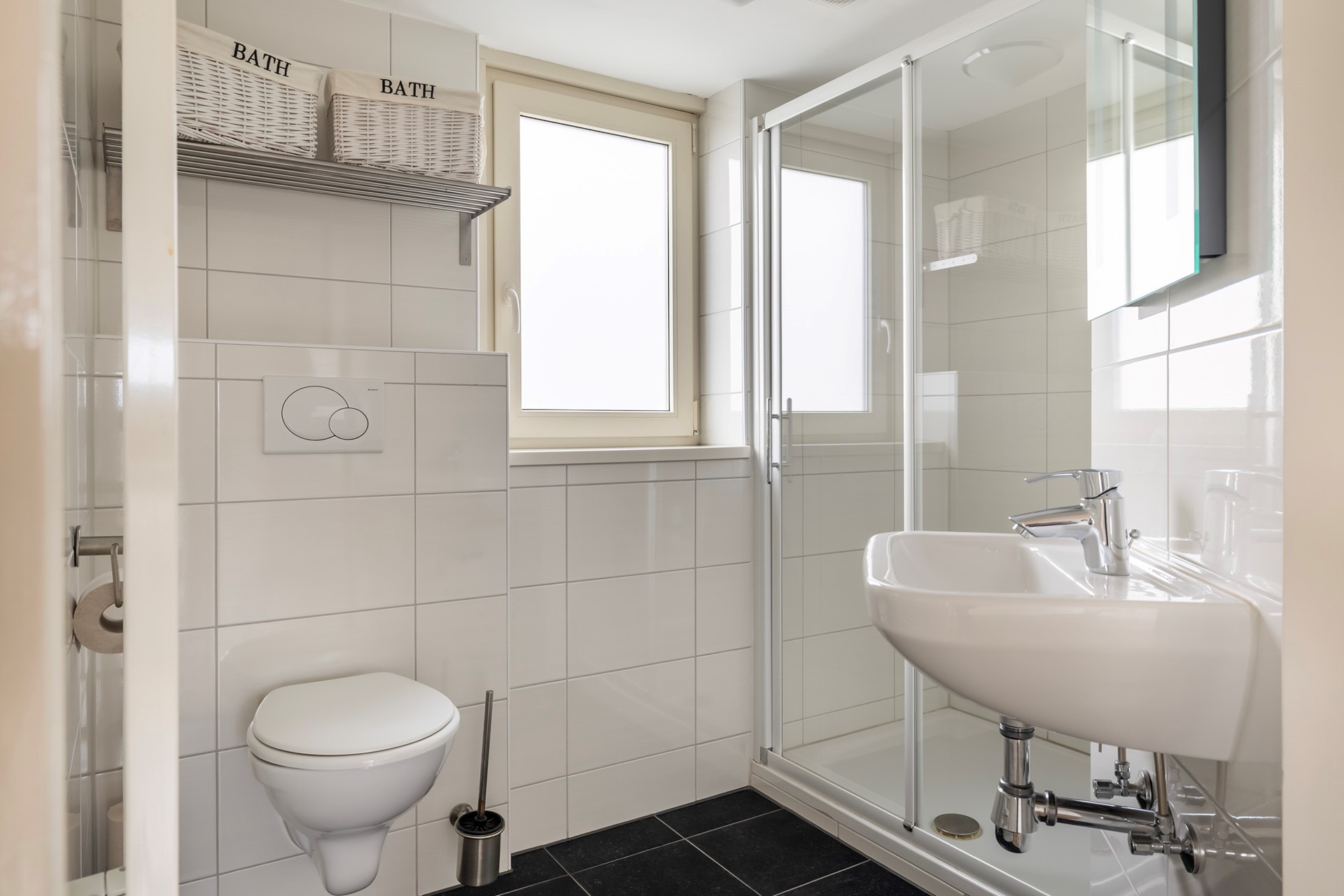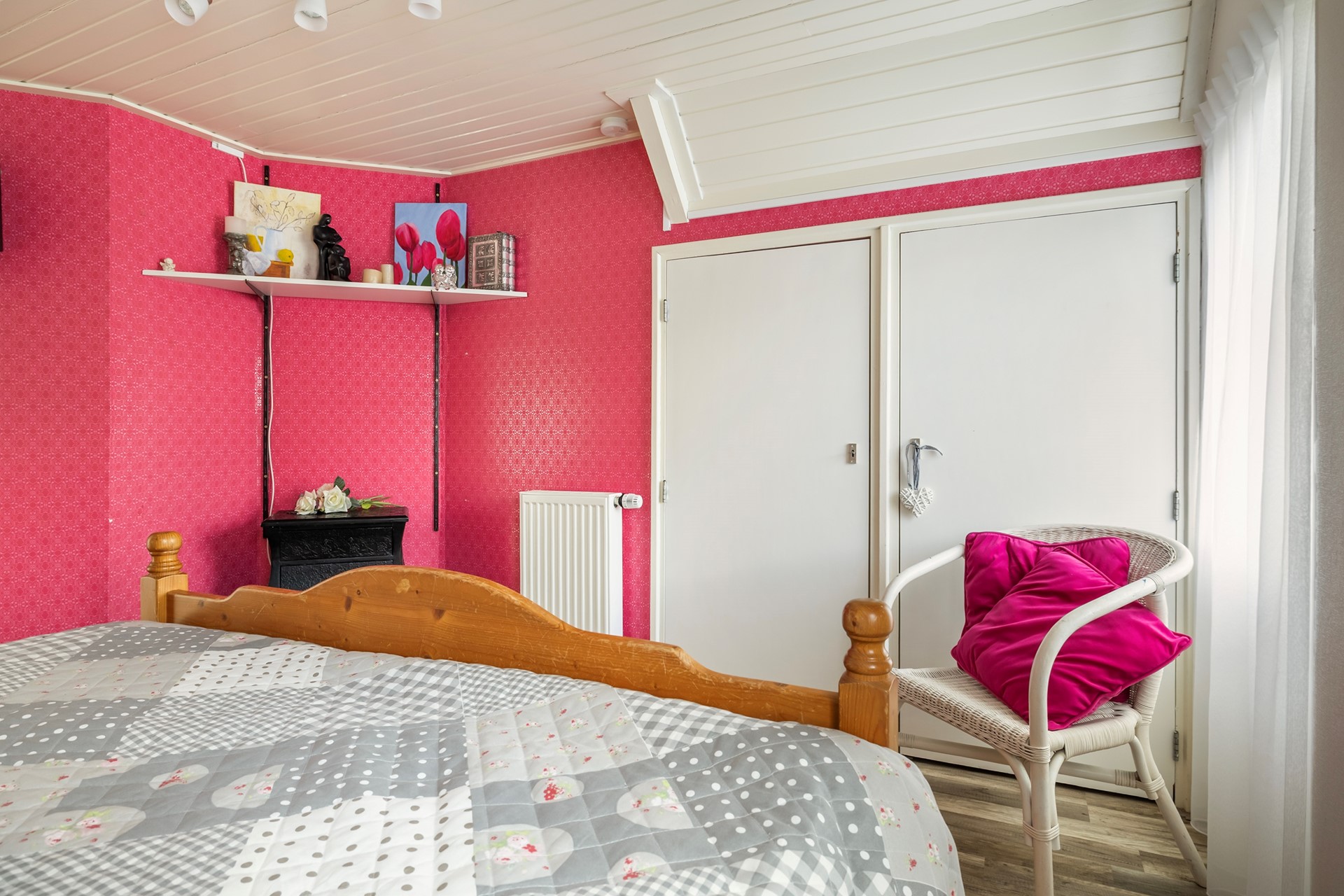 De overloop geeft toegang tot twee ruime, lichte slaapkamers. Daarnaast bevindt zich hier een tweede badkamer, uitgerust met een douche, wastafel en toilet. Ideaal voor gasten of de rest van het gezin.