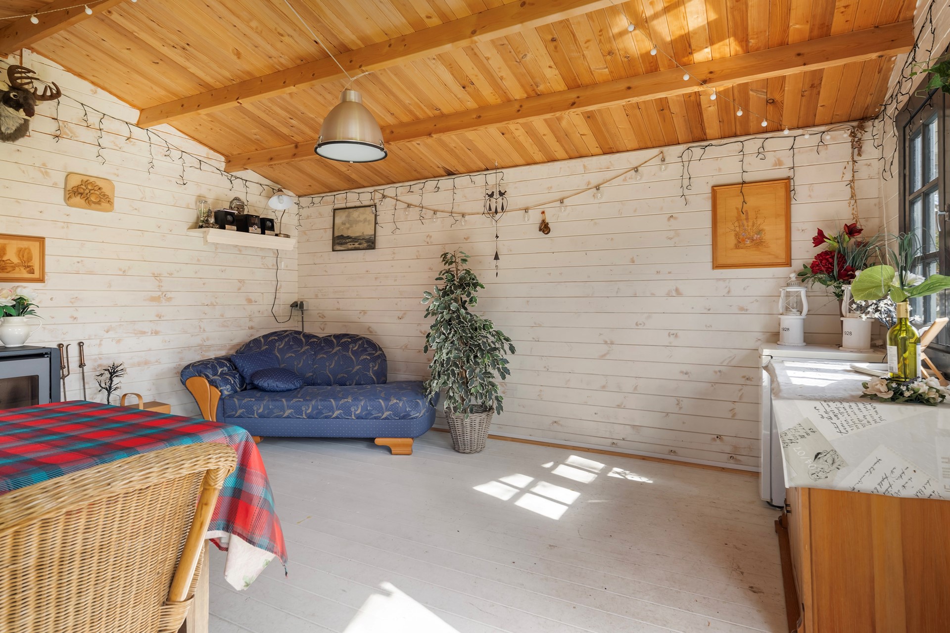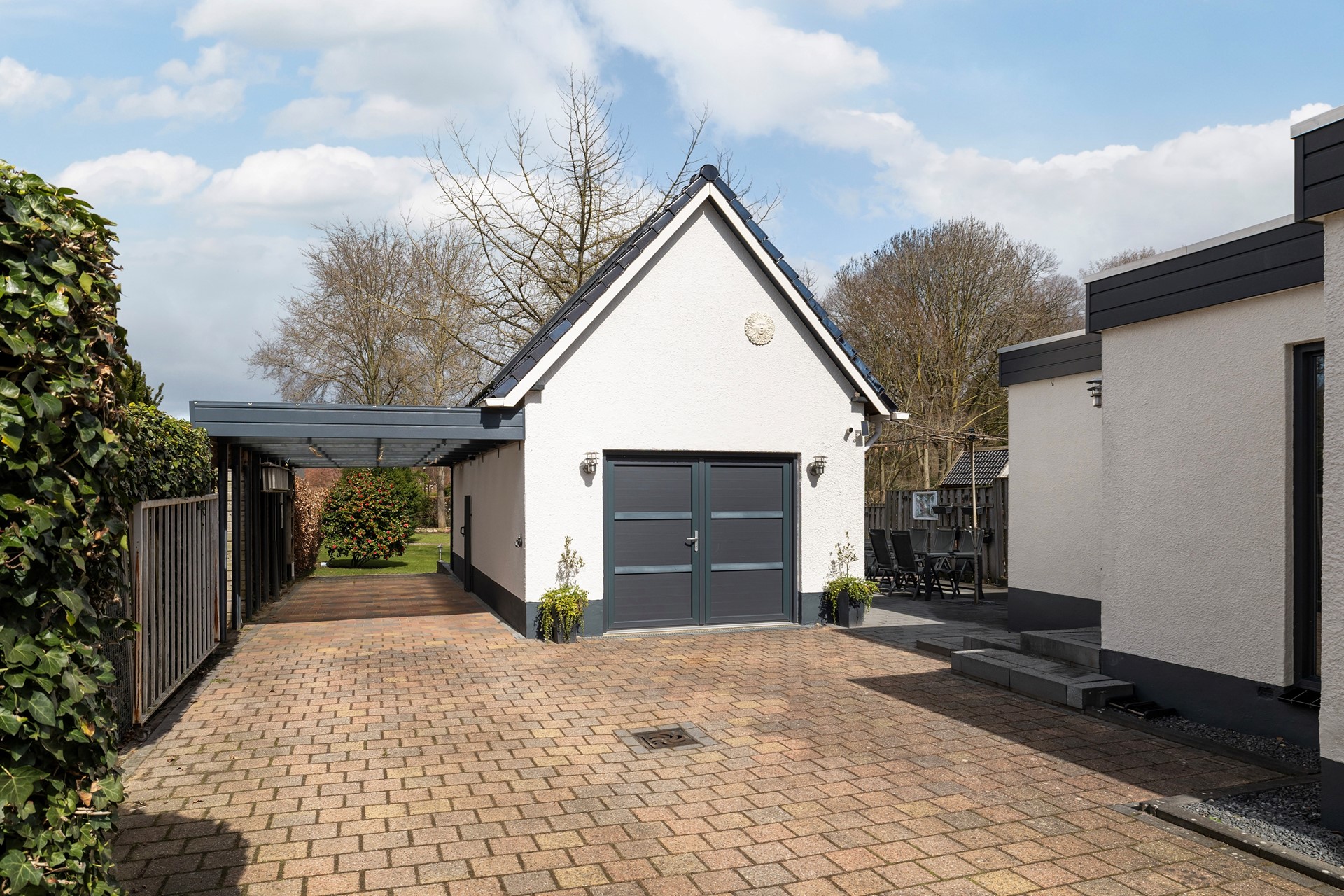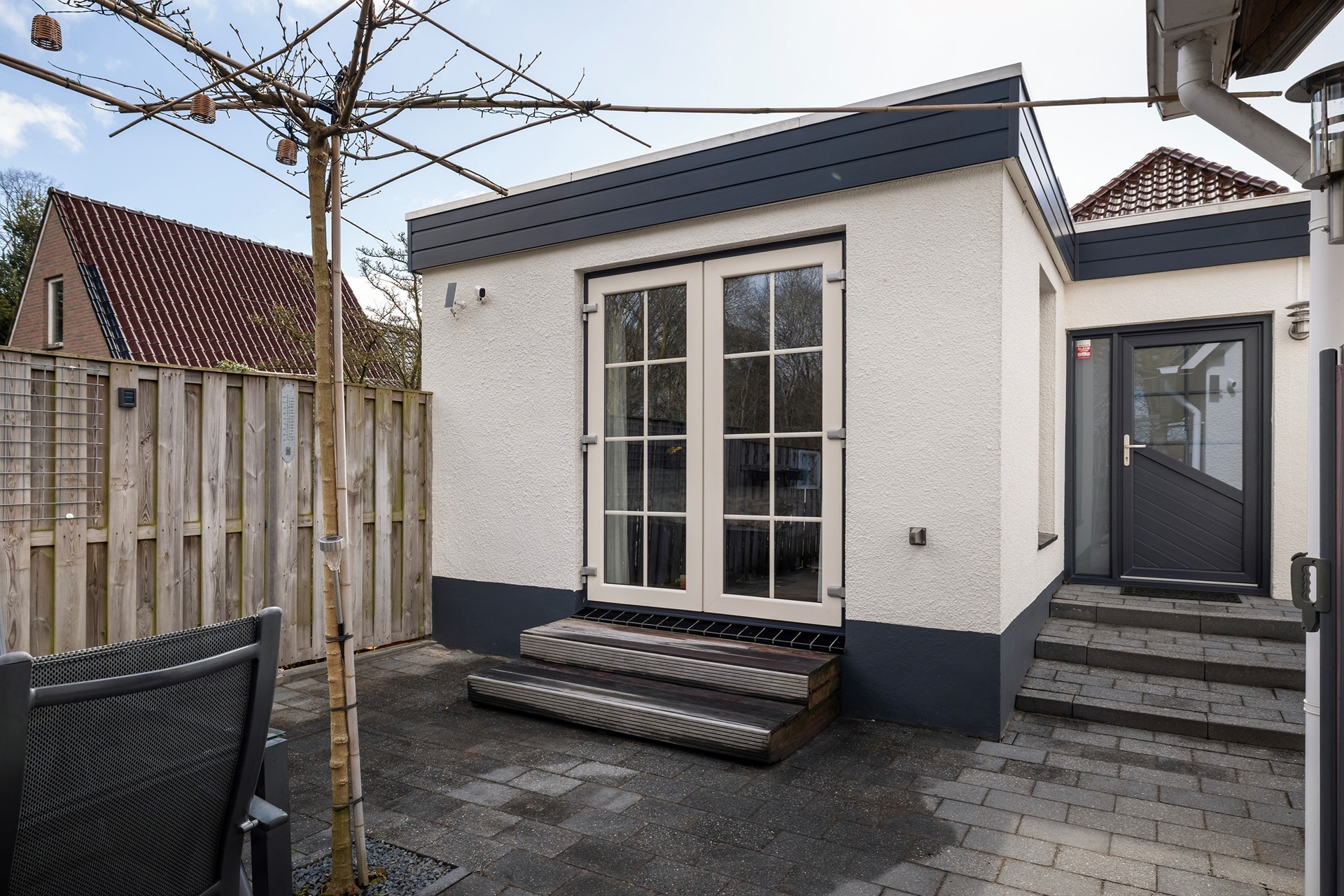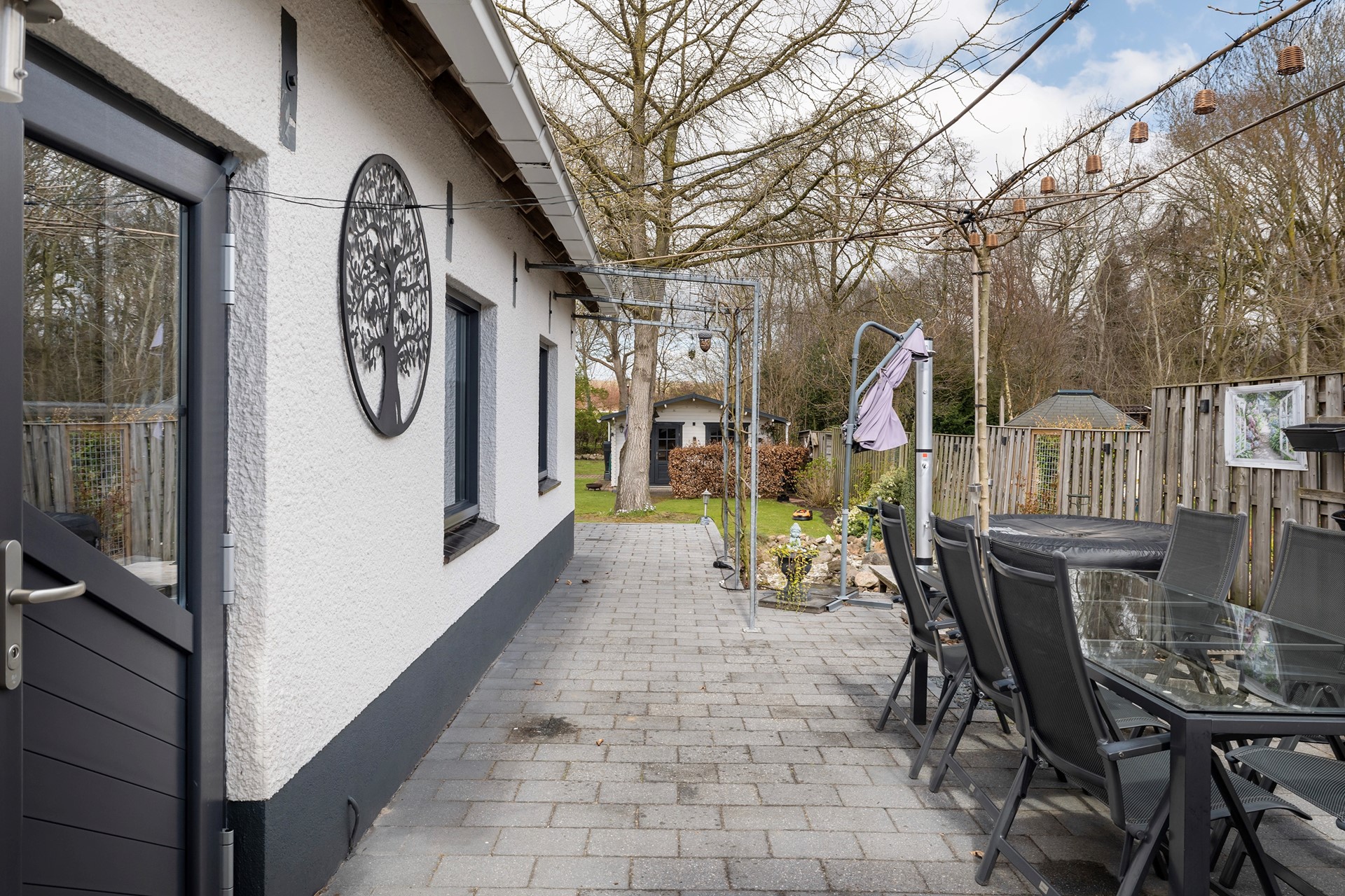 Buitenleven op z'n best De buitenruimte is werkelijk een paradijs. De diepe achtertuin is prachtig aangelegd met diverse terrassen, waardoor er altijd een plekje in de zon of schaduw te vinden is. • Garage & Carport: Een ruime vrijstaande stenen garage (met spouwmuur en kap) en een aangebouwde carport bieden volop ruimte voor auto’s, hobby’s of opslag. • De blokhu: Achter in de tuin staat een vrijstaande houten blokhut met eigen pelletkachel. De perfecte plek voor een "man-cave", atelier of gewoon voor de fijne avonduurtjes met vrienden. • Ligging: Gelegen aan vaar- en viswater, dus gooi gerust een hengeltje uit!