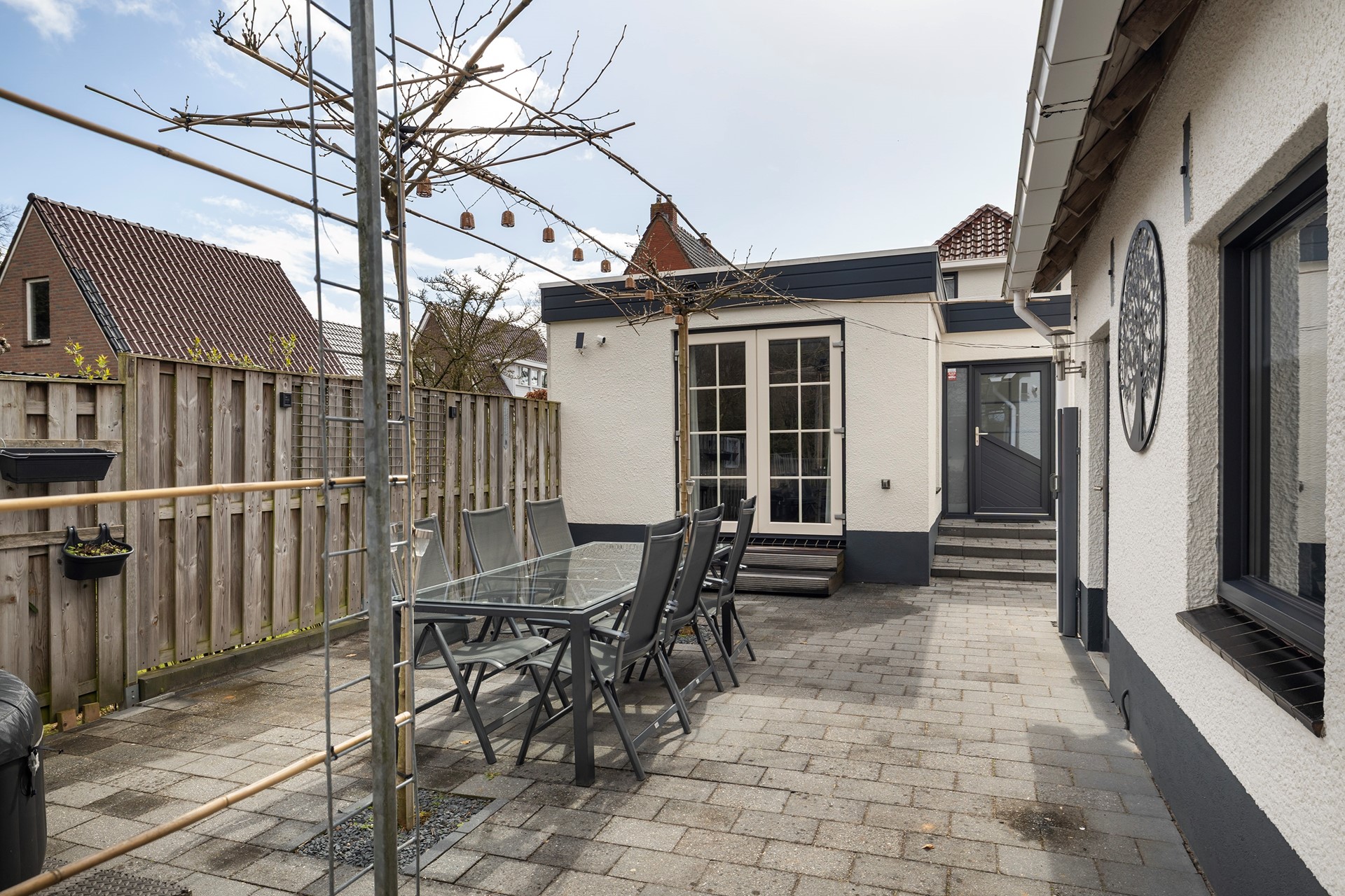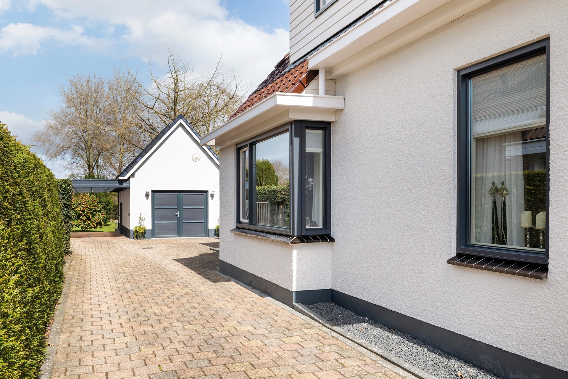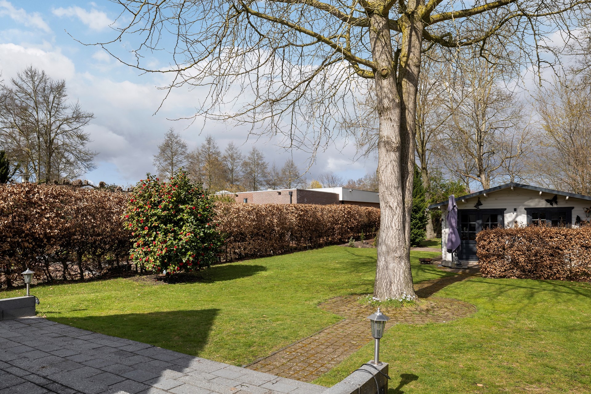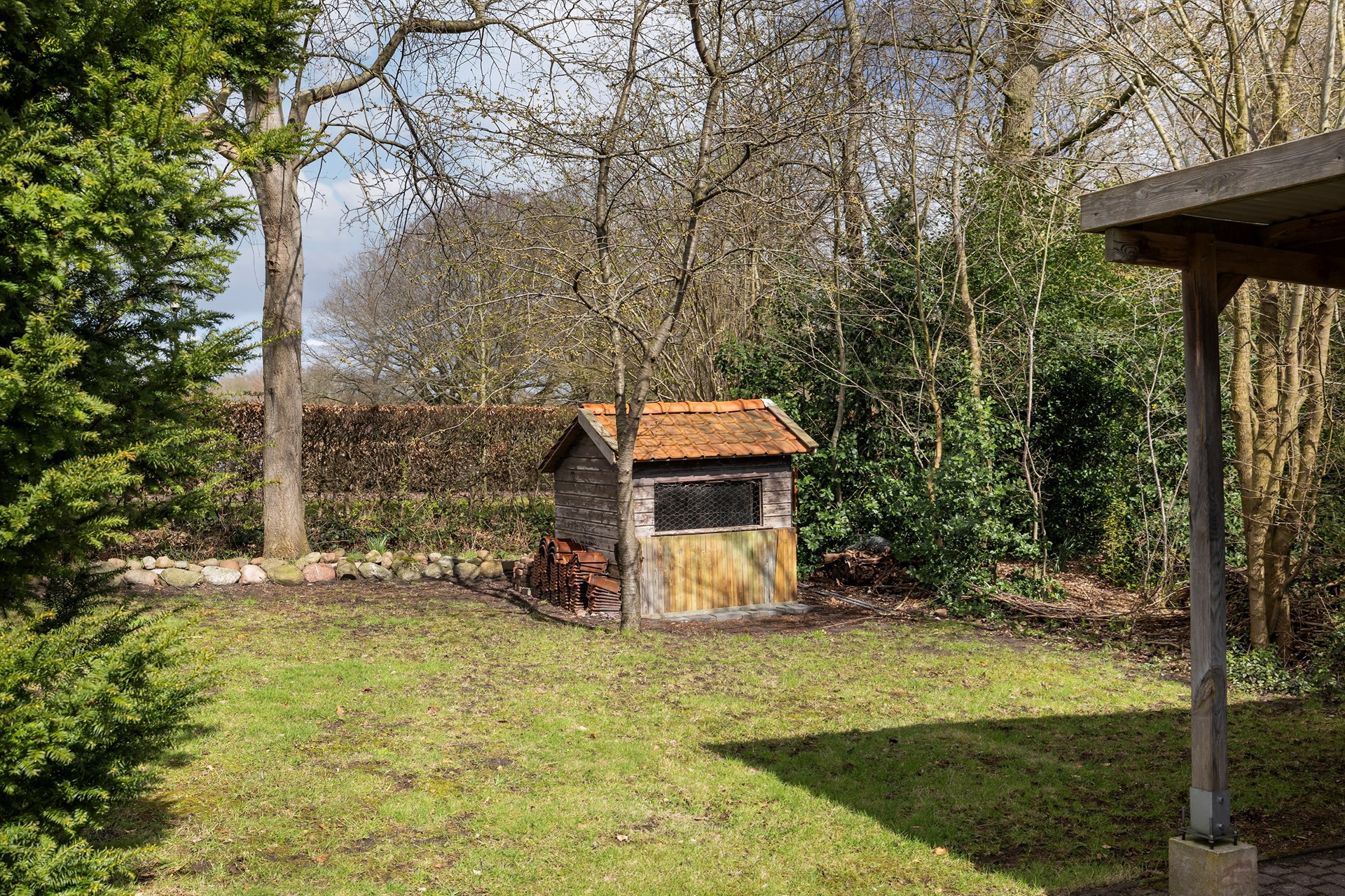 Buitenleven op z'n best De buitenruimte is werkelijk een paradijs. De diepe achtertuin is prachtig aangelegd met diverse terrassen, waardoor er altijd een plekje in de zon of schaduw te vinden is. • Garage & Carport: Een ruime vrijstaande stenen garage (met spouwmuur en kap) en een aangebouwde carport bieden volop ruimte voor auto’s, hobby’s of opslag. • De blokhu: Achter in de tuin staat een vrijstaande houten blokhut met eigen pelletkachel. De perfecte plek voor een "man-cave", atelier of gewoon voor de fijne avonduurtjes met vrienden. • Ligging: Gelegen aan vaar- en viswater, dus gooi gerust een hengeltje uit!