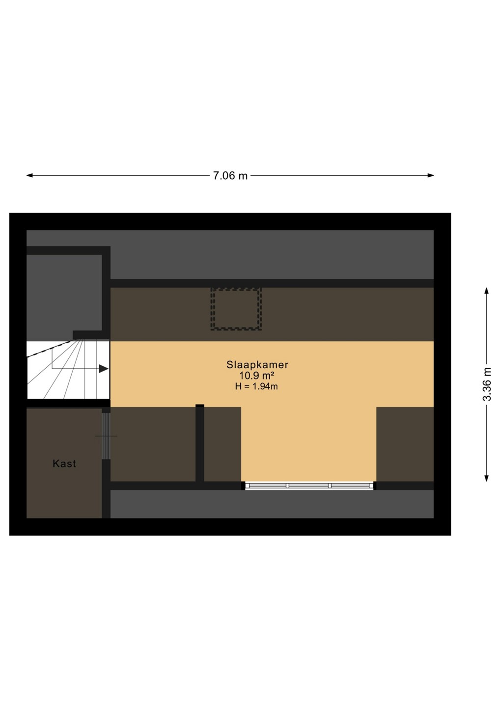 Hier bevindt zich de slaapkamer, die door de grote dakkapel verrassend ruim en licht is.